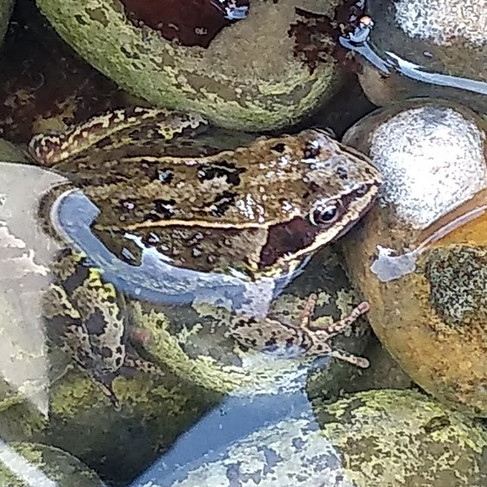 Other key events were when my husband was repairing the roof of our summer house and laid the felt out on our lawn to warm up. It was only there for a couple of hours but it warmed up so much it scorched the grass and looked like a landing strip for light aircraft! Fortunately a couple of days of torrential rain led to a quick recovery. And if you follow my facebook or instagram pages you may recognise this frog, which my kitten chased into my bedroom early one morning; getting into a dressing gown, down the stairs, unlocking a door and walking out to the pond all with a frog in one hand turns out to be quite a skill :-).