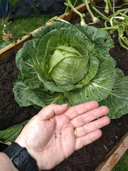 Left to right: jostaberries, blueberries, cabbage and seeds, tomato "indigo rose" (an unusual black variety)