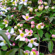 Left to right and top to bottom: Astrantia 'April Love' - as the name implies this can be an early variety but usually late April / early May, not this early; Fuchsia 'Hawkshead'; Vinca minor (periwinkle); Saxifrage 'Touran Deep Red'; Solanum crispum 'Glasnevin'; Cornus Sanguinea 'Midwinter Fire'; Justicia rizzinii; Halimiocistus Sahucii; Escallonia rubra; Citrus(unknown variety of orange); Choisya ternata; Clematis Montana (unknown variety. This is actually our neighbour's plant but it grows across the fence so I get to enjoy it too!); Berberis darwinii (flowers have been particularly prolific and long-lived this year); Acer palmatum 'Atropurpureum'.