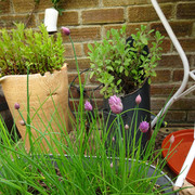Left to right and top to bottom: my first tomato flower for this year; broad beans; potatoes; plums; pears; fig; blackcurrant flowers; blueberry blossom; amelanchier lamarckii flowers; oregano; chives, mint and sage.