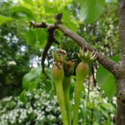 A mild but very wet February and March have not been kind to all of my fruit trees. These conditions encourage lots of different fungal infections, and a quick inspection has revealed that my almond tree is suffering from peach leaf curl (the name is misleading, it's not just peaches it affects) while the new growth on my apple tree is riddled with powdery mildew. I don't like to use chemicals in my garden if I can possibly avoid them so I'm attemting to control both outbreaks culturally. The almond tree will probably be alright, I've removed the affected leaves and am checking regularly for any new ones. The apple tree unfortunately is a write-off for this year as I've had to remove all new growth, but hopefully things will improve next year.